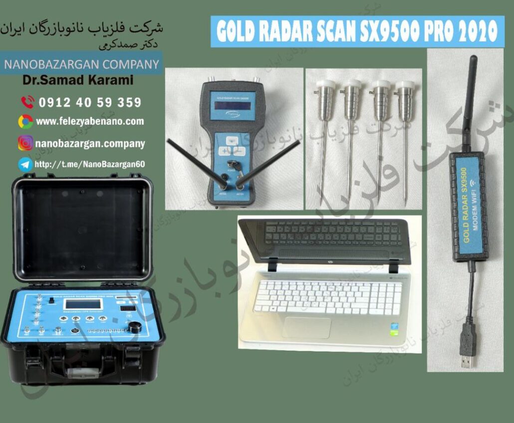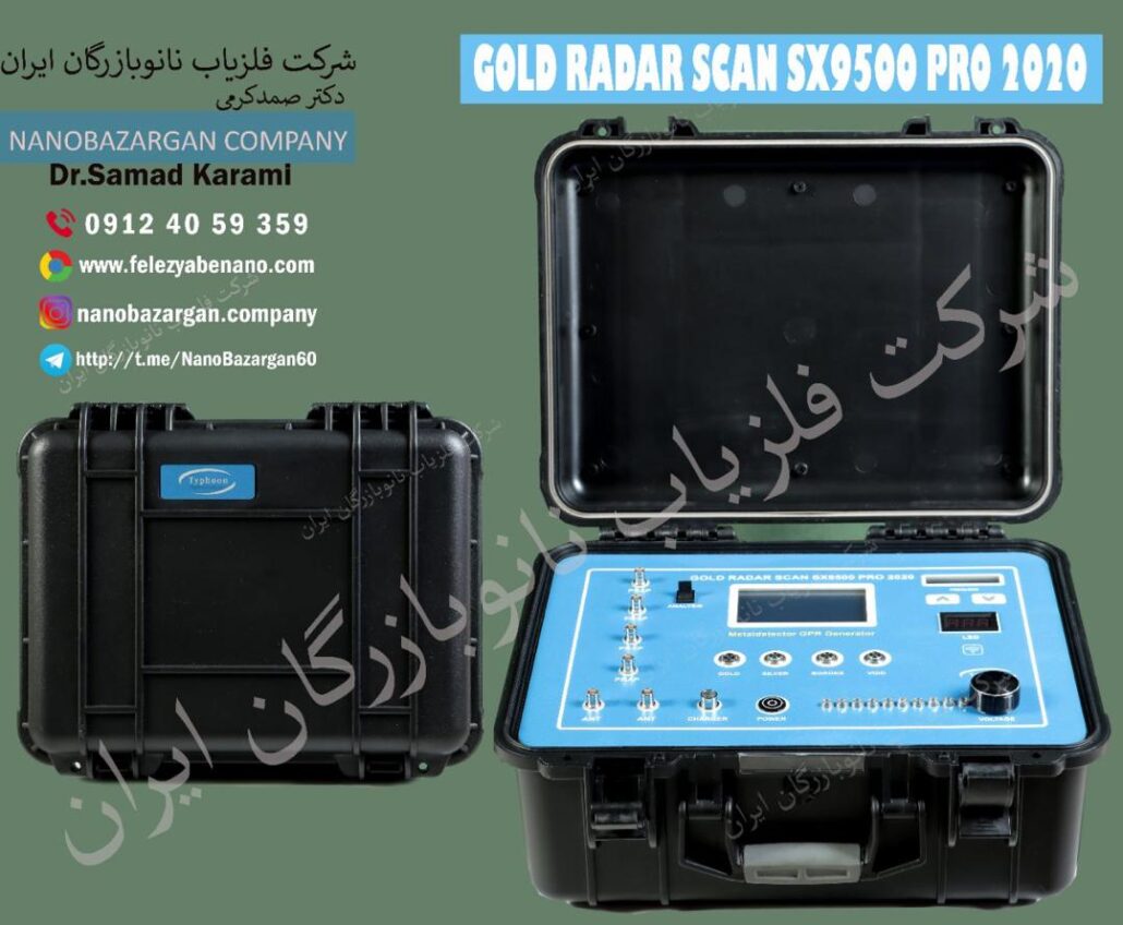 سیستم راداراسکن مدل SX9500 پرو GOLD RADAR SCAN SX9500 PRO 2020 دارای ۱۲سنسور پیشرفته LNC و ۱۲ سنسور TR9600 با جفت سنسورهای آلتراسونیک. محدوده کاوش تصویربرداری همزمان ۴۰۰متر در ۴۰۰مترمربع. عمق کاوش تونل و حفره و فضاهای خالی ۹۰متر و عمق فلزات ۸۵متر مفید و رگه های معدنی تا عمق ۱۲۰متر. اسکن برداری همزمان و سریع زمین در حالت کپچرینگ به ابعاد حدودا ۱۶۰هزار مترمربع از راه دور ۷۰۰متری از طریق سیستم کپچرینگ و در حالت کابل بندی یا چهار پراپ تا ۲۵متر در ۲۵متر با دوازده فیلتر حذف ذرات عالی.